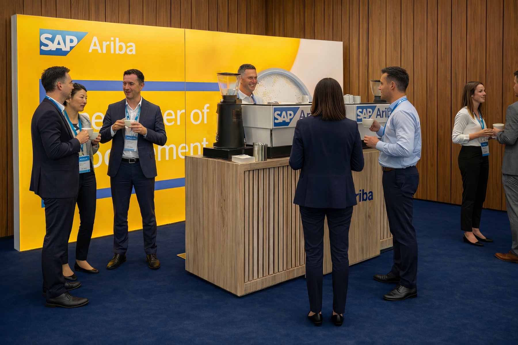 A clean, contemporary setup that embodied SAP’s values of excellence and connection. Over 1,000 coffees were served during the two-day event, turning the stand into a vibrant hub of hospitality and conversation.